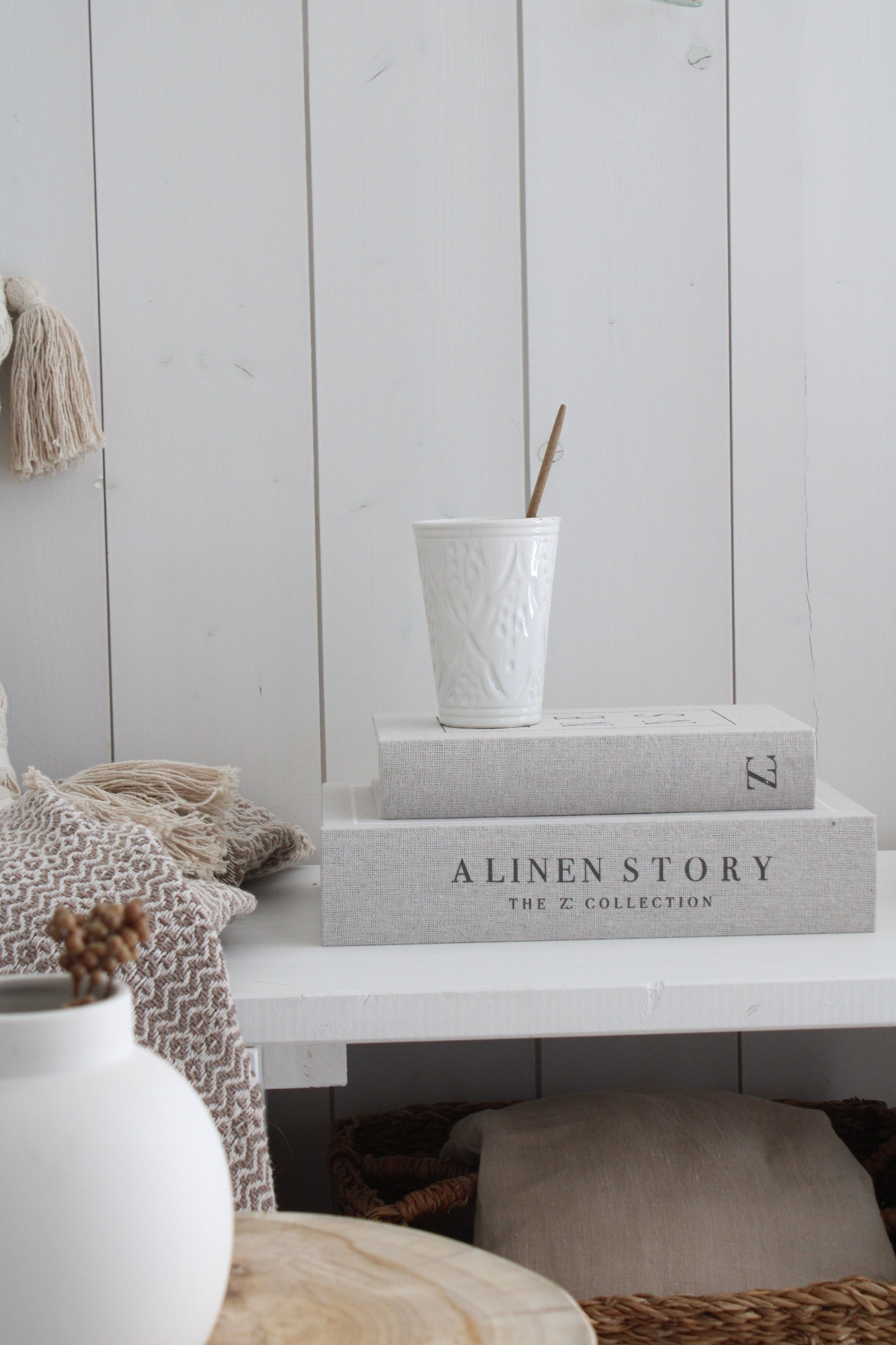 Die Bücher sind mit Leinenstoff mit Text bezogen. Passt perfekt auf den Couchtisch, das Sideboard, ins Badezimmer oder auf den Nachttisch.