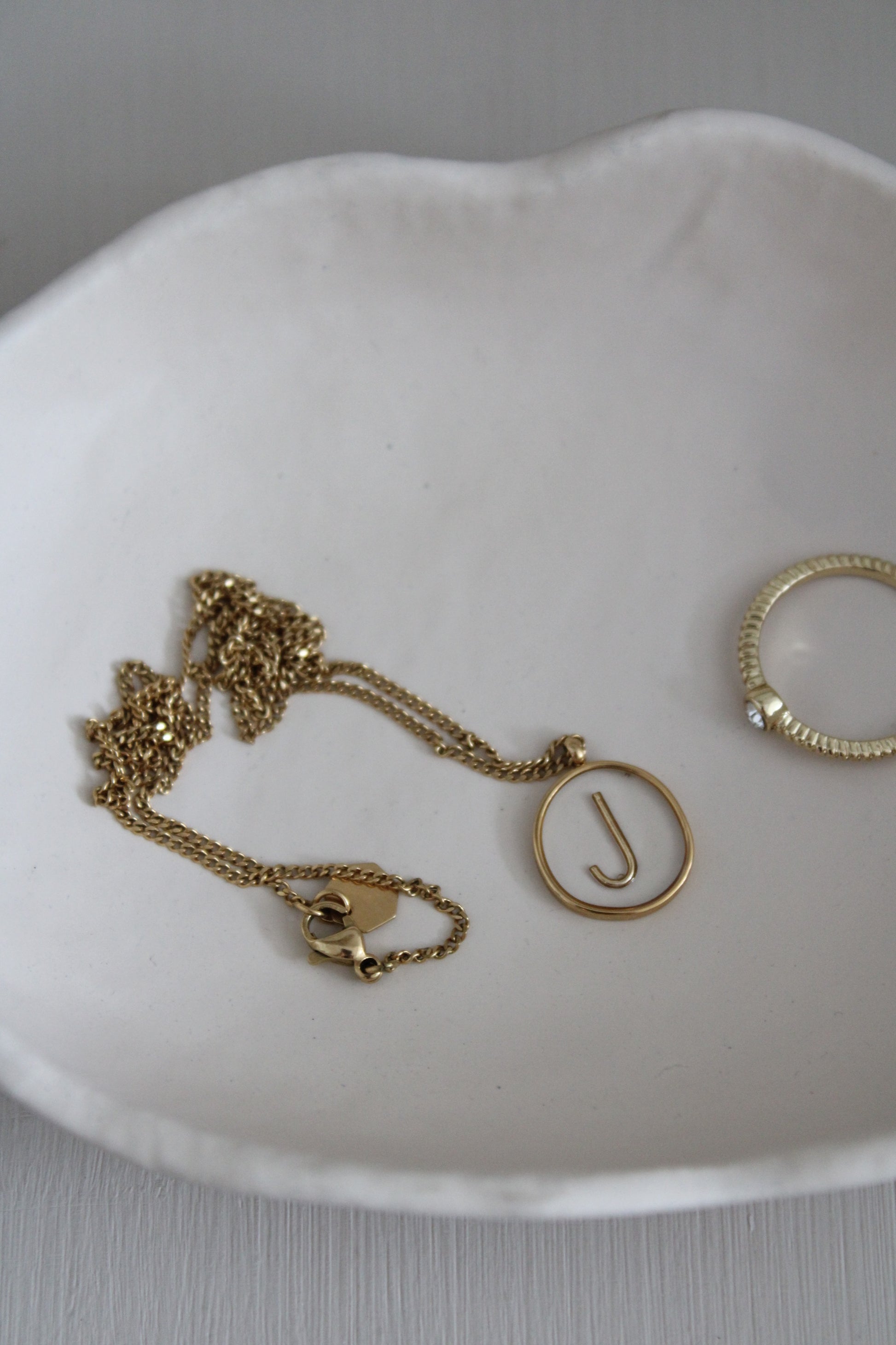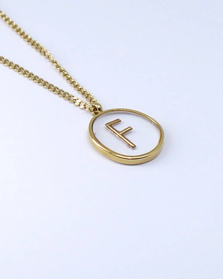 Verstellbare Halskette aus Goldstahl, 50 cm lang + 5 cm lang, mit rundem Anhänger aus transparentem Harz und Anfangsbuchstabe in der Mitte Material: goldener Edelstahl