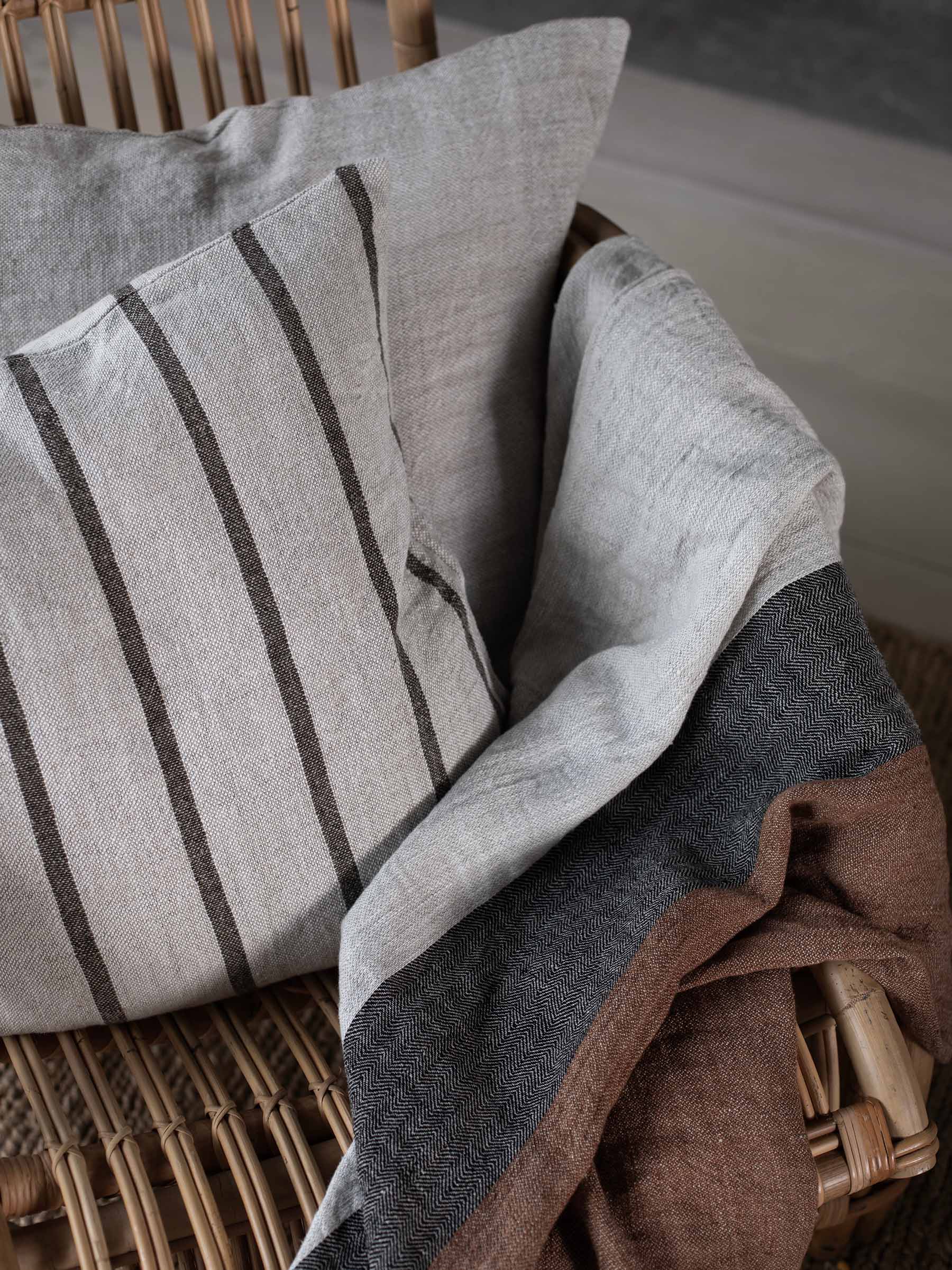 • 100% europäisches Leinen • Handgewebtes Leinen • Zeitloses Design Zeitloser Kissenbezug 40x60 aus grobem Leinen mit schmalen Streifen in der Farbe Taupe. Der Melvin Kissenbezug hat eine schöne Struktur in einem lebendigen Farbton mit verschiedenen Stoffvariationen. Der verwendete Stoff ist handgewebt, wodurch jeder Kissenbezug ein Unikat ist. Textur, Farbe und Form können daher leicht von den Bildern abweichen. Melvin eignet sich sowohl für das Sofa als auch für das Bett und kann mit anderen schönen Dekokissen kombiniert werden. Der Kissenbezug wird mit einem diskreten Reißverschluss an der Unterseite geschlossen und wird ohne Innenkissen geliefert.
