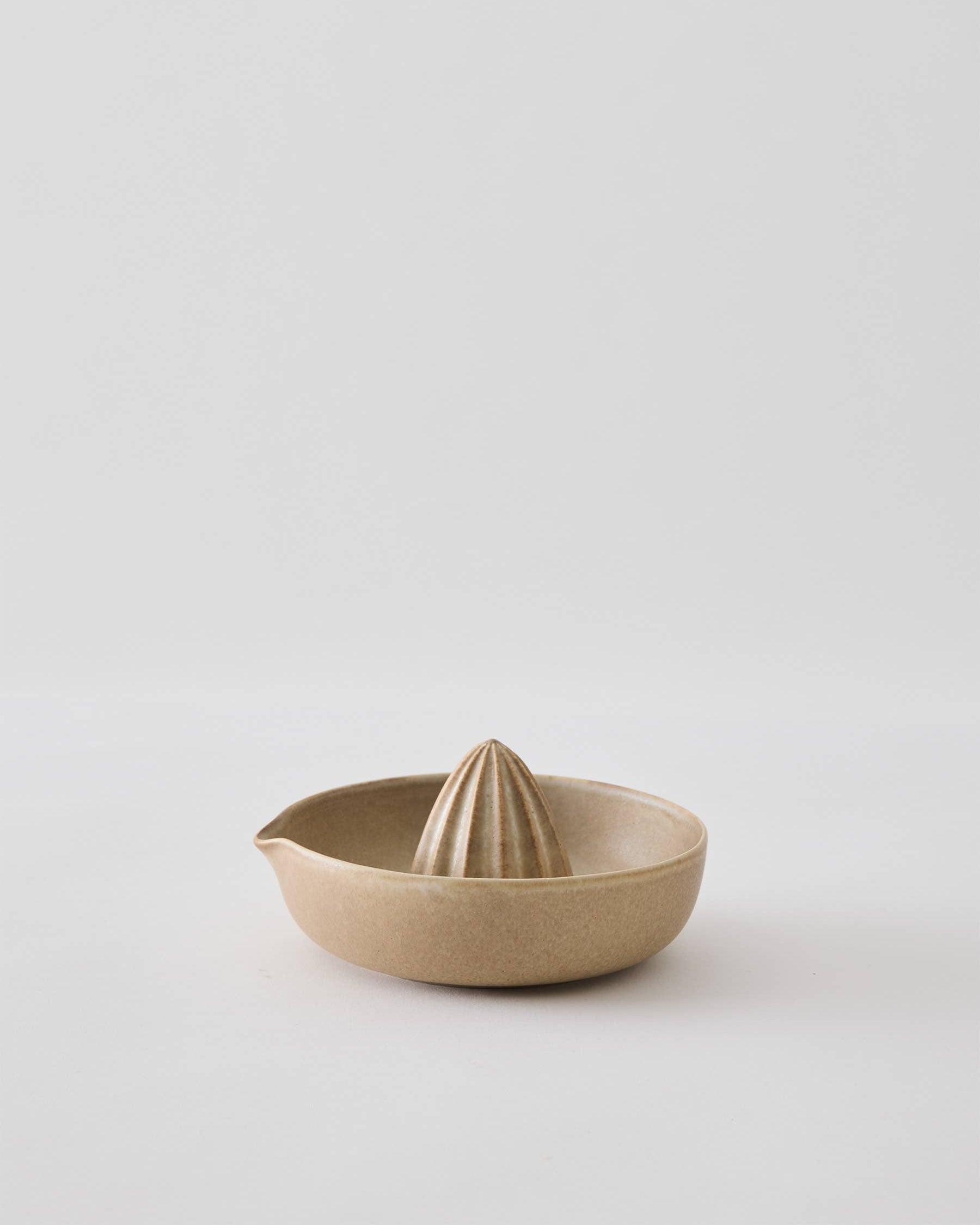 Zitruspresse aus glasiertem Steingut mit reaktiver Glasur und abgerundeter Form für effizientes Entsaften. Eine stilvolle und funktionale Ergänzung für Ihre Küche.